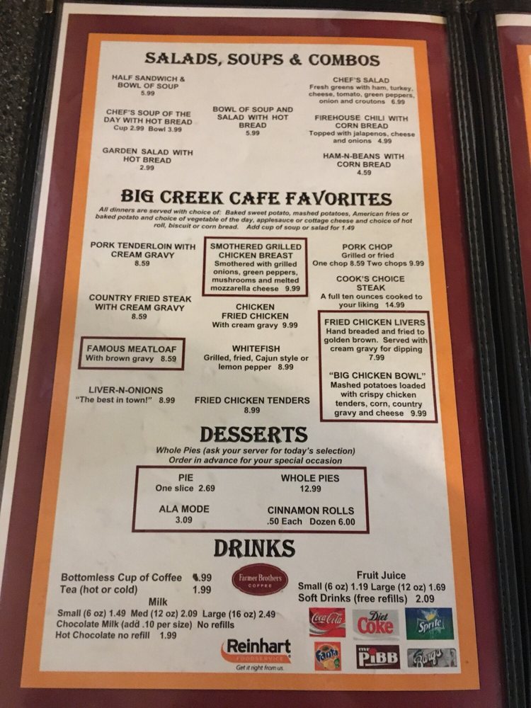 Big Creek Cafe Menu